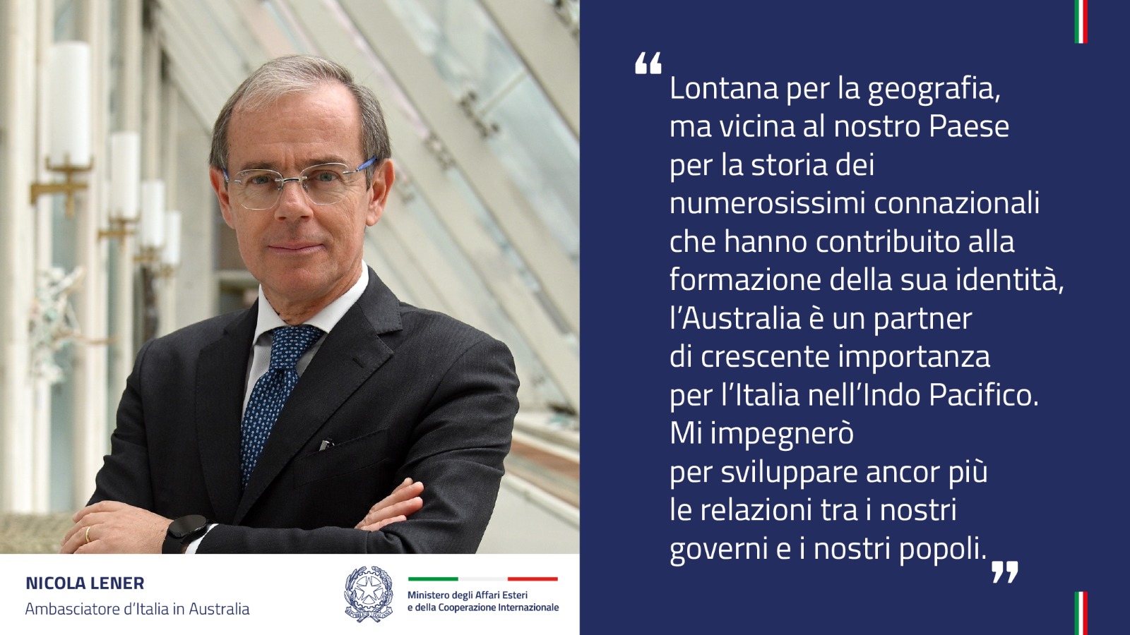 “Geographically distant, but close to our Country for the history of the large number of Italians who contributed to shaping its identity, Australia is an increasingly important partner for Italy in the Indo-Pacific region.
